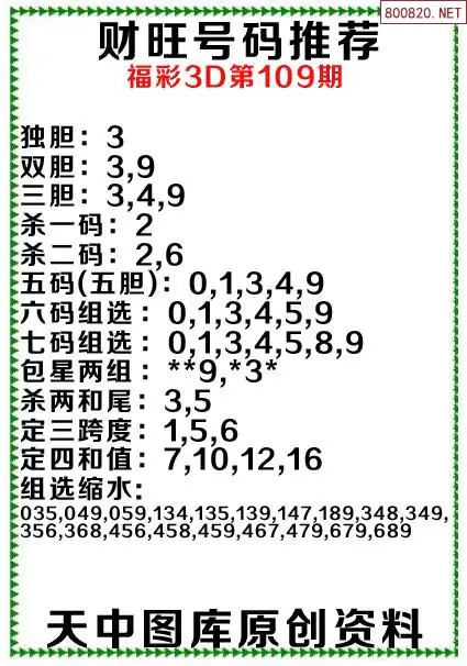 (3)2026108期3D预测总汇全图_福彩3d图谜字谜总汇