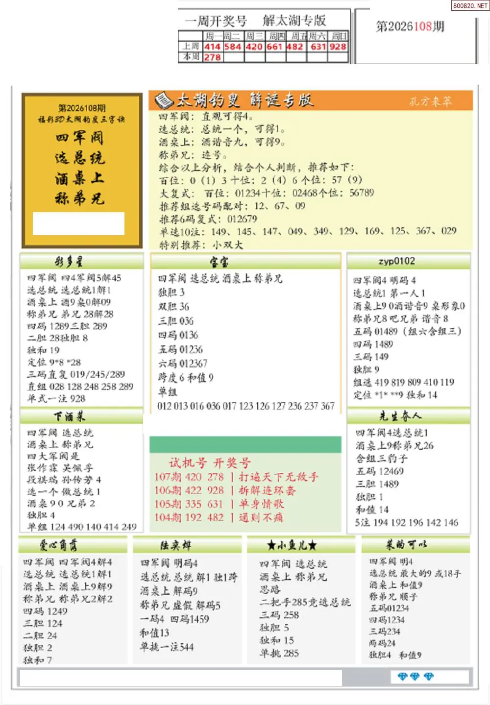 (2)26年108期本期3d图迷汇总_福彩3D图谜总汇图