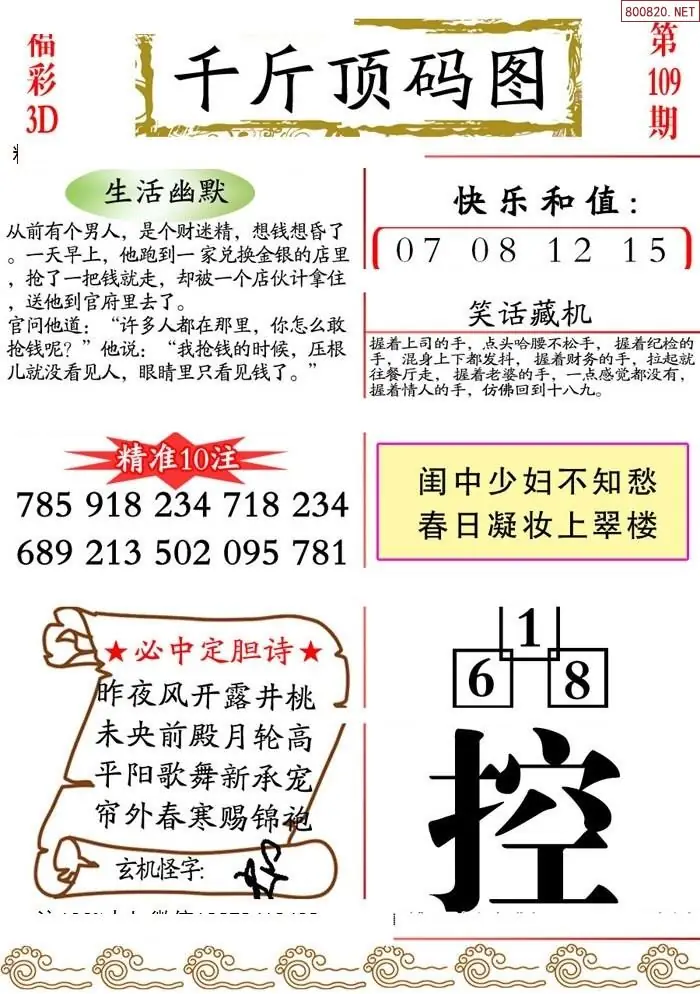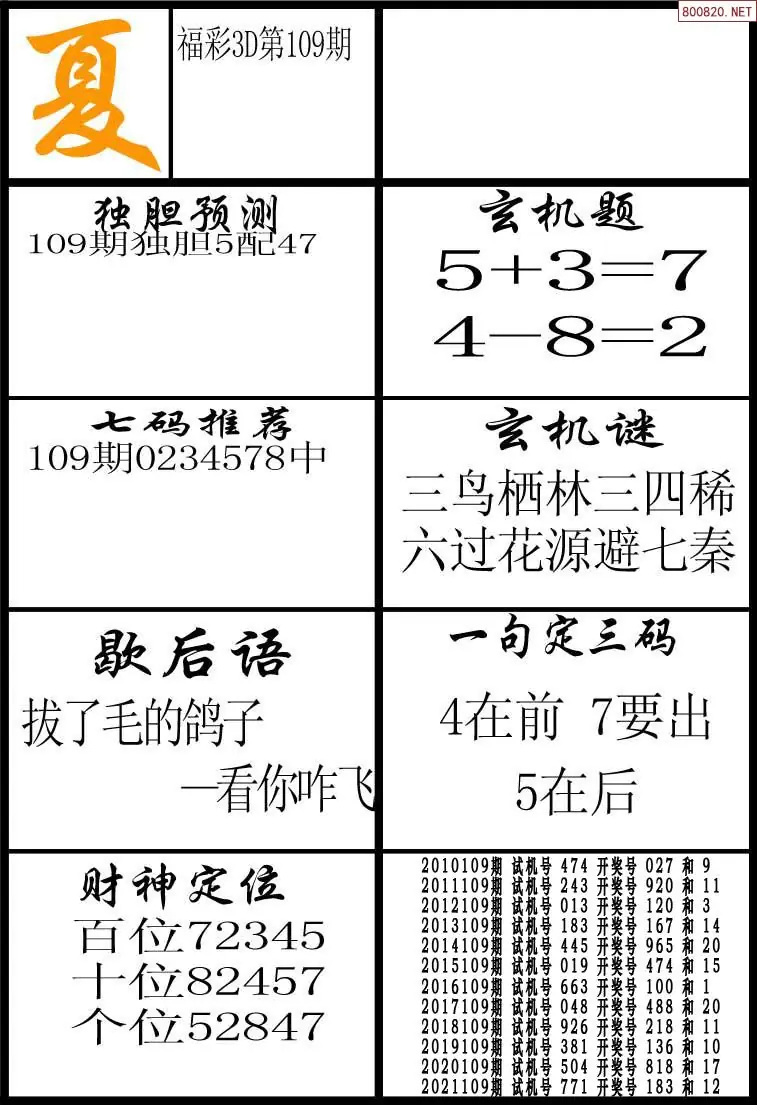 (3)2026108期3D预测总汇全图_福彩3d图谜字谜总汇