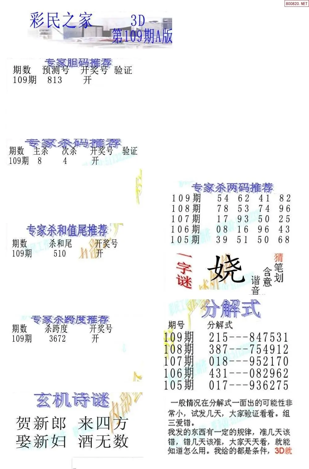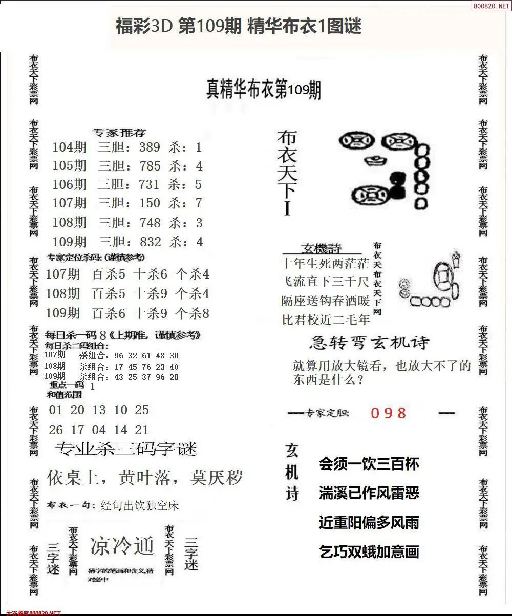 (3)2026109期3D预测总汇全图_福彩3d图谜字谜总汇