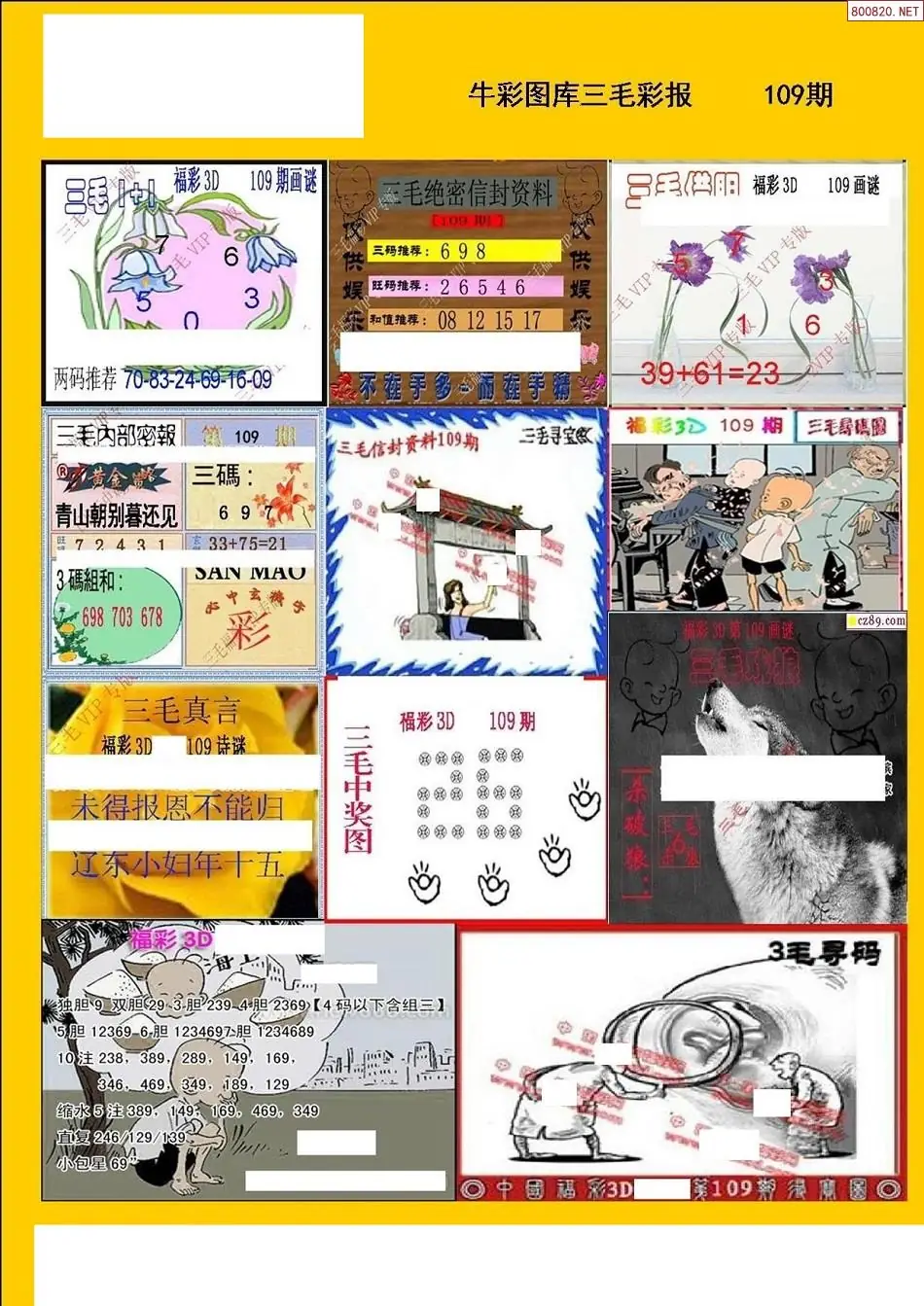 (2)26年109期本期3d图迷汇总_福彩3D图谜总汇图