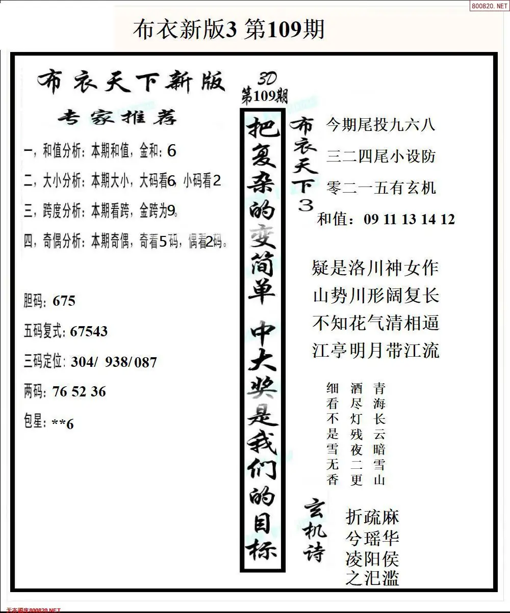 (8)26年109期今日3d各类彩报汇总