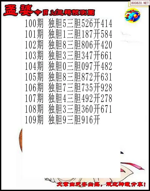 (3)2026108期3D预测总汇全图_福彩3d图谜字谜总汇