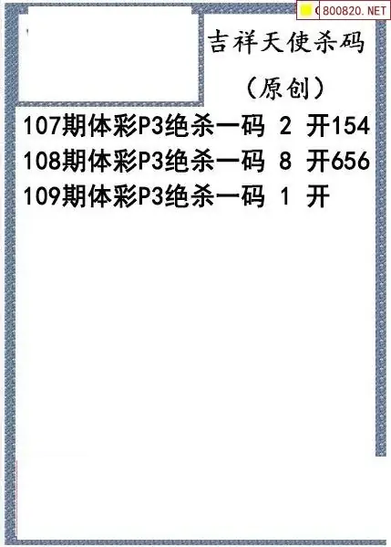 26年109期吉祥天使今日杀码图谜