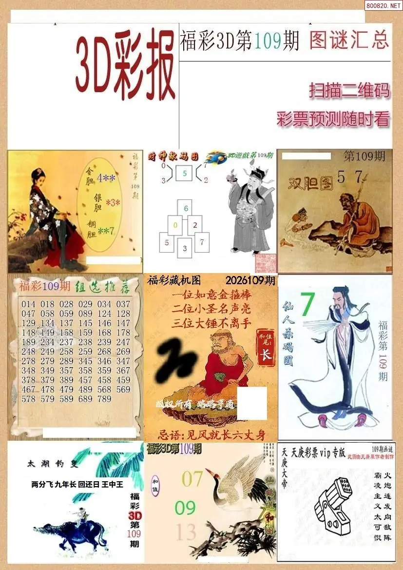(3)2026108期3D预测总汇全图_福彩3d图谜字谜总汇
