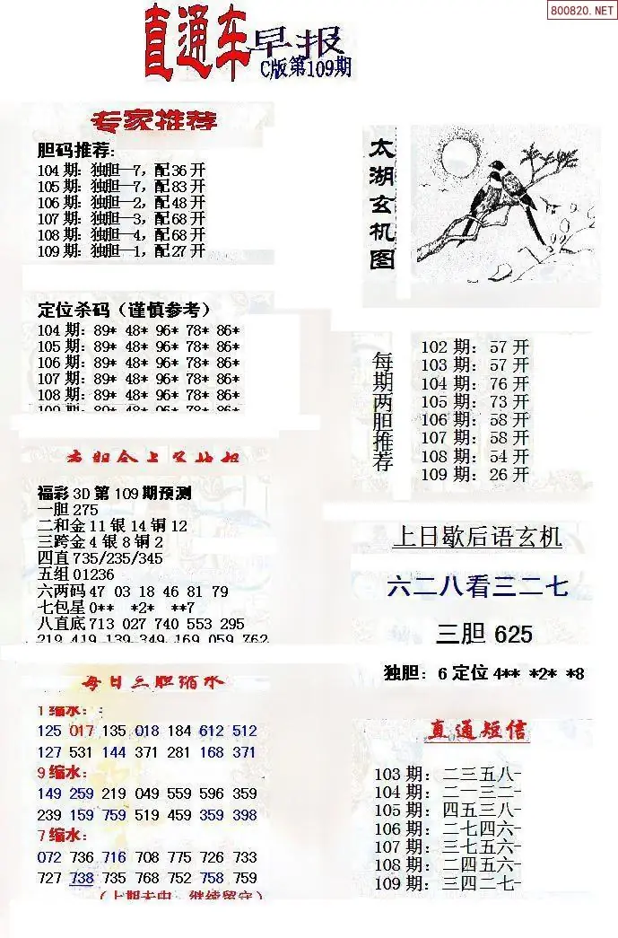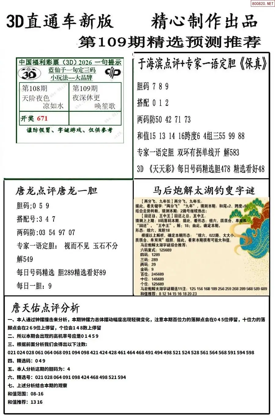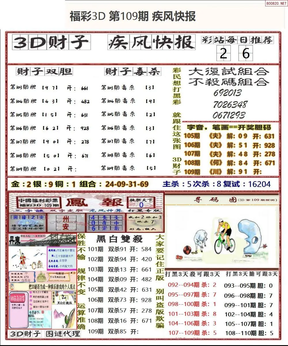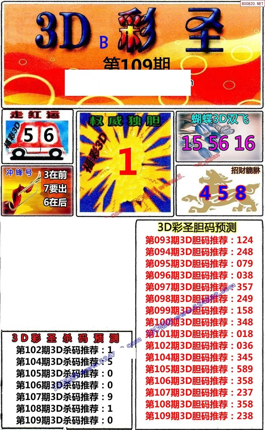 (8)26年109期今日3d各类彩报汇总