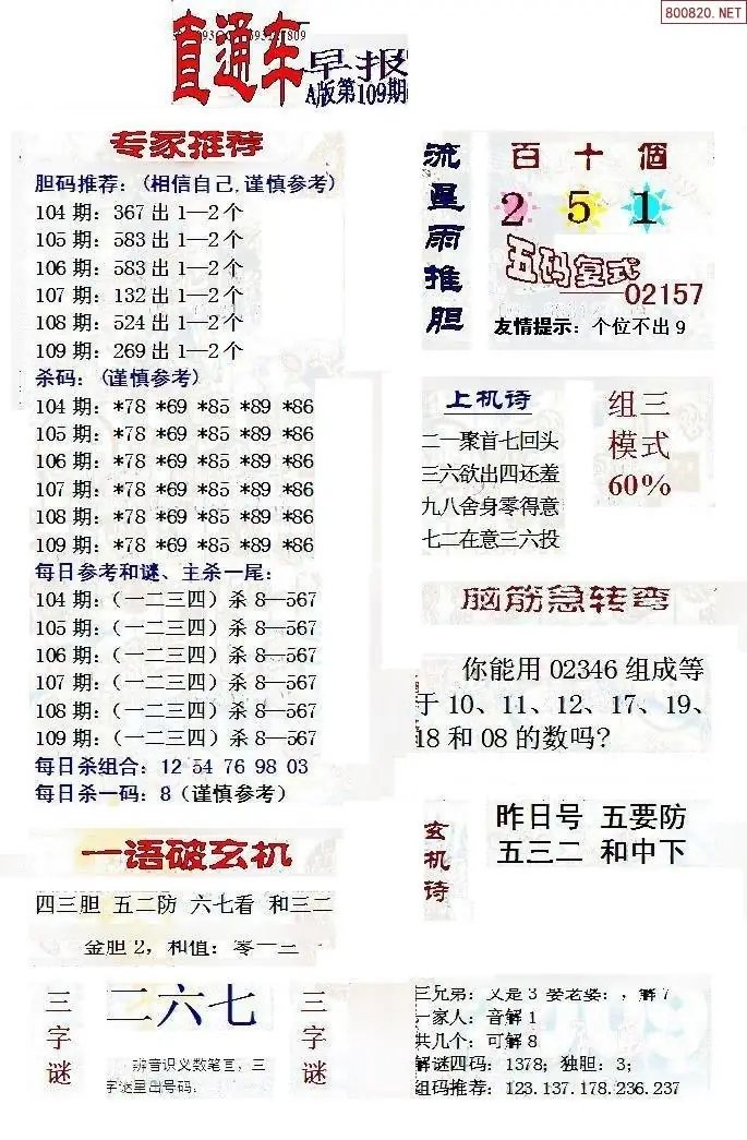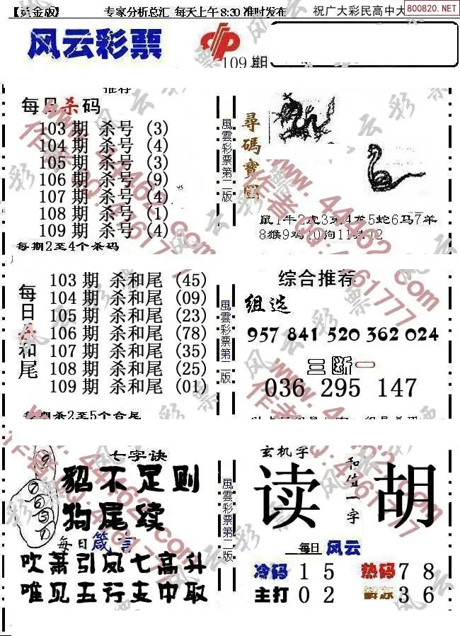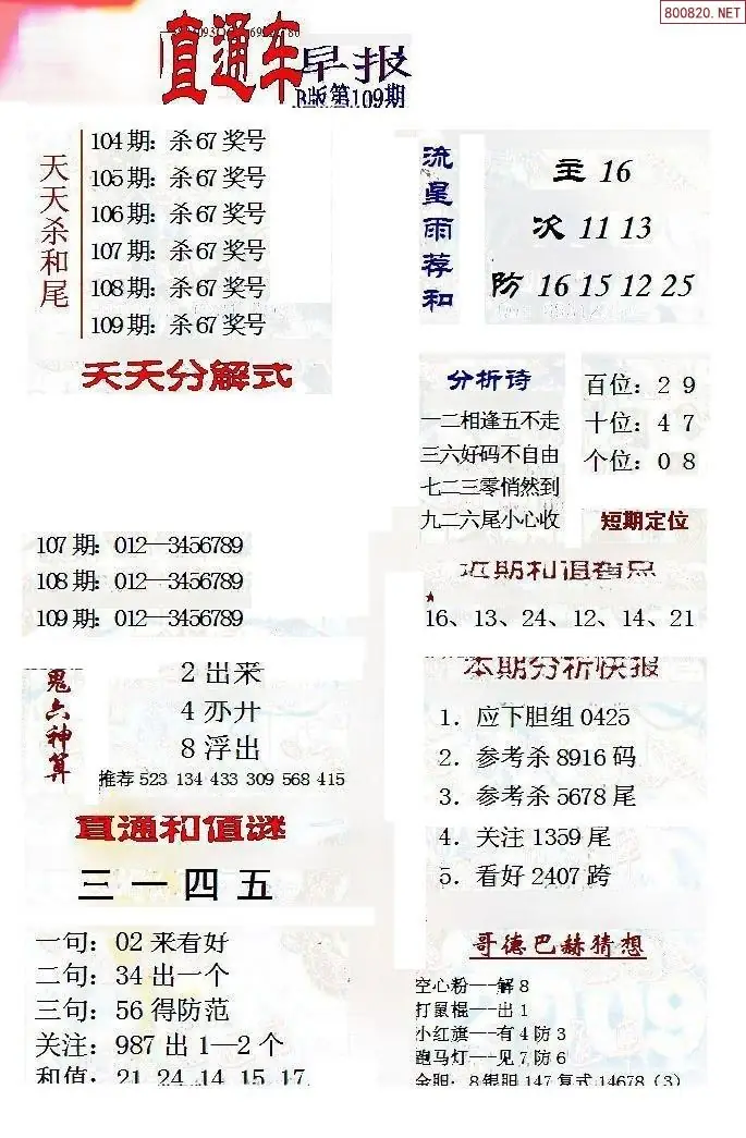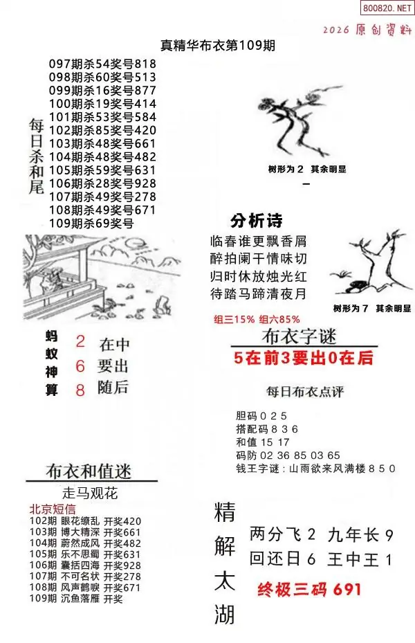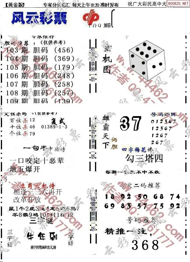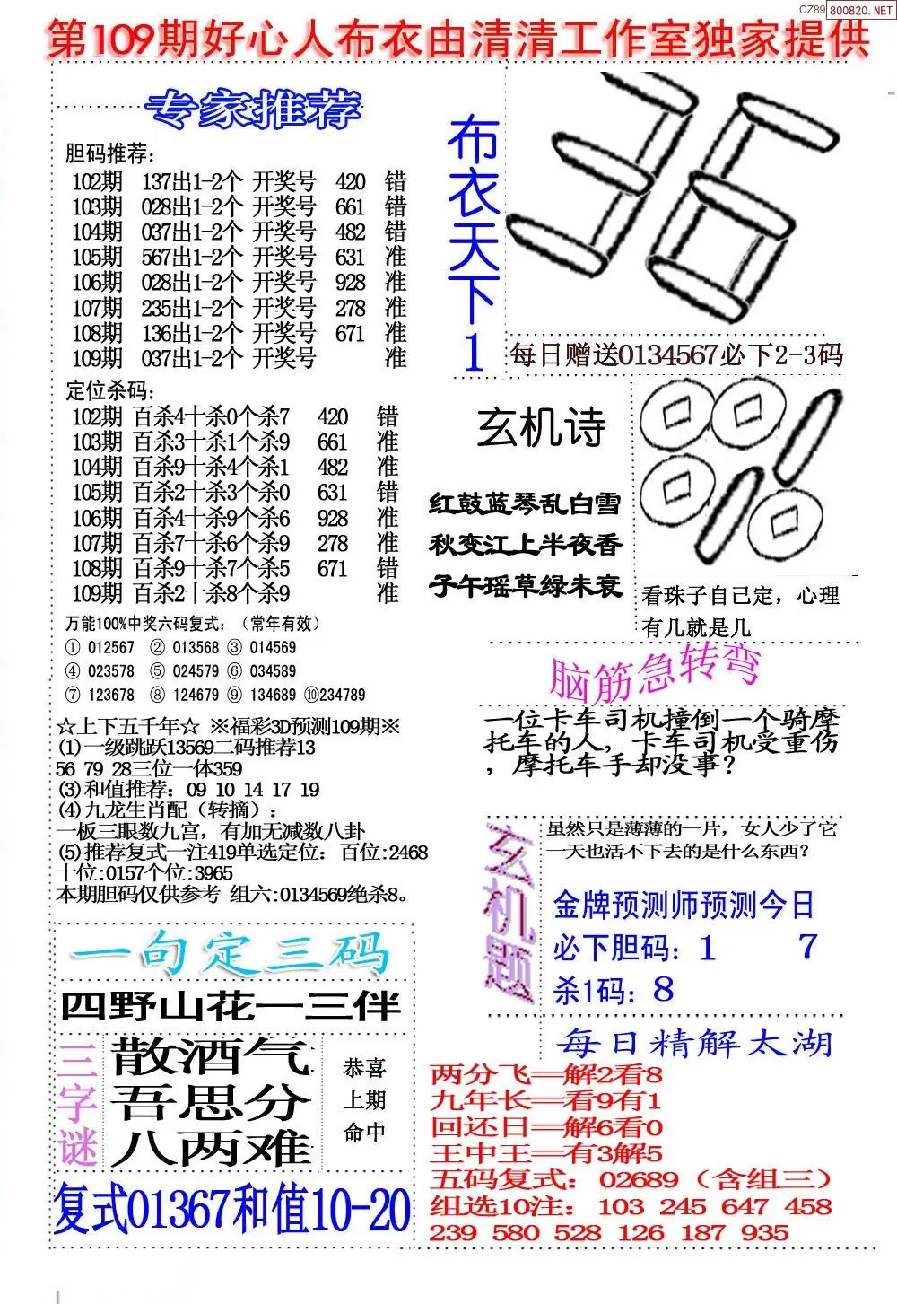 (8)26年109期今日3d各类彩报汇总