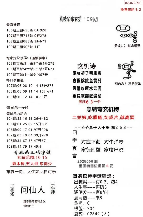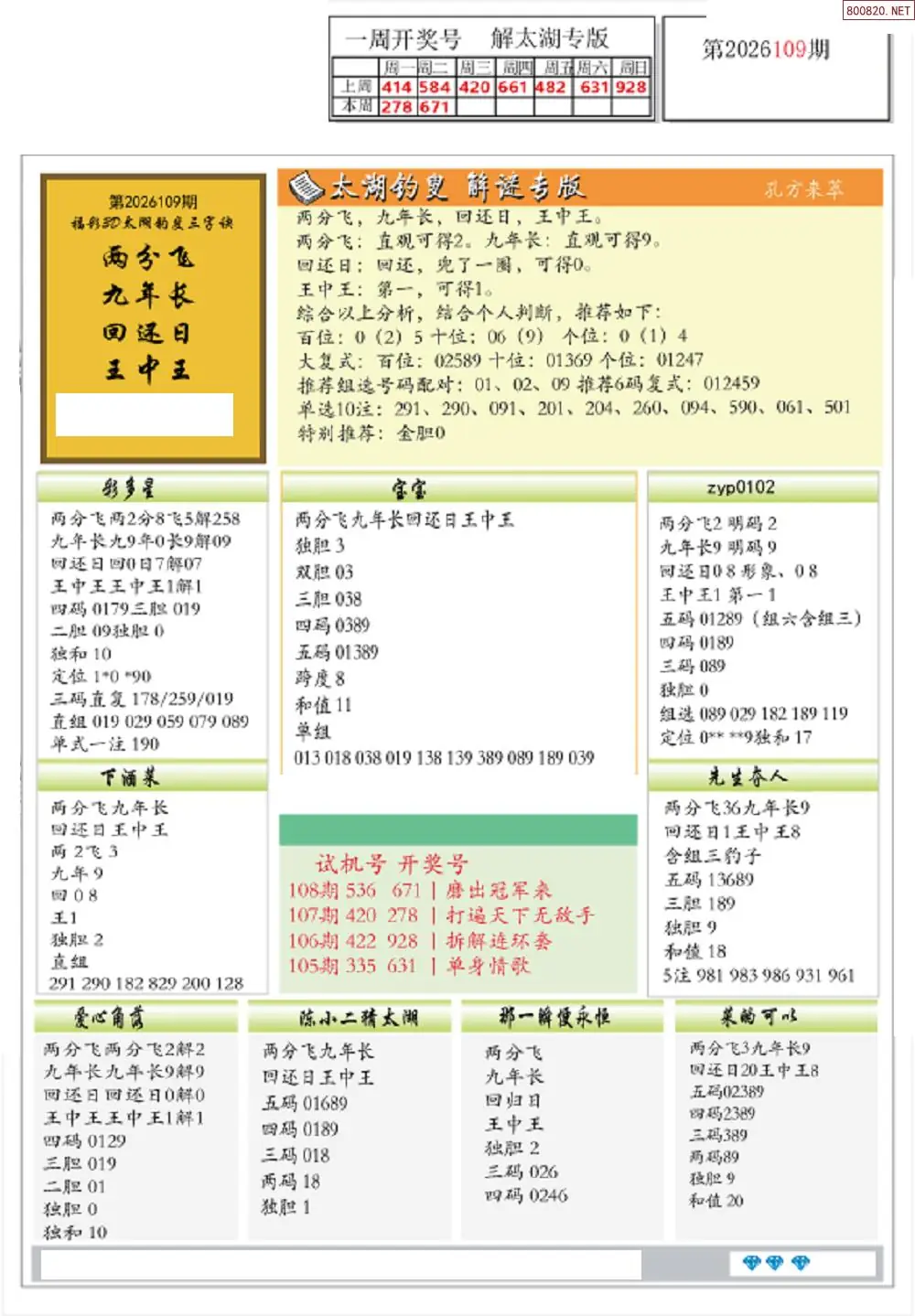 (2)26年109期本期3d图迷汇总_福彩3D图谜总汇图