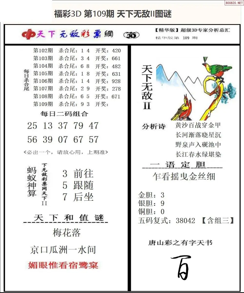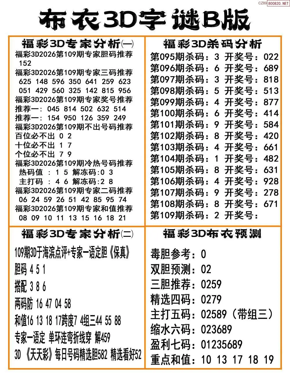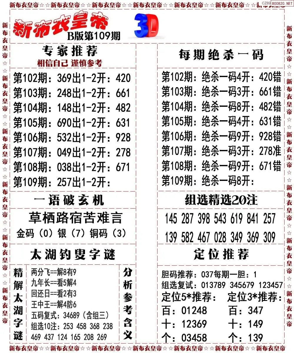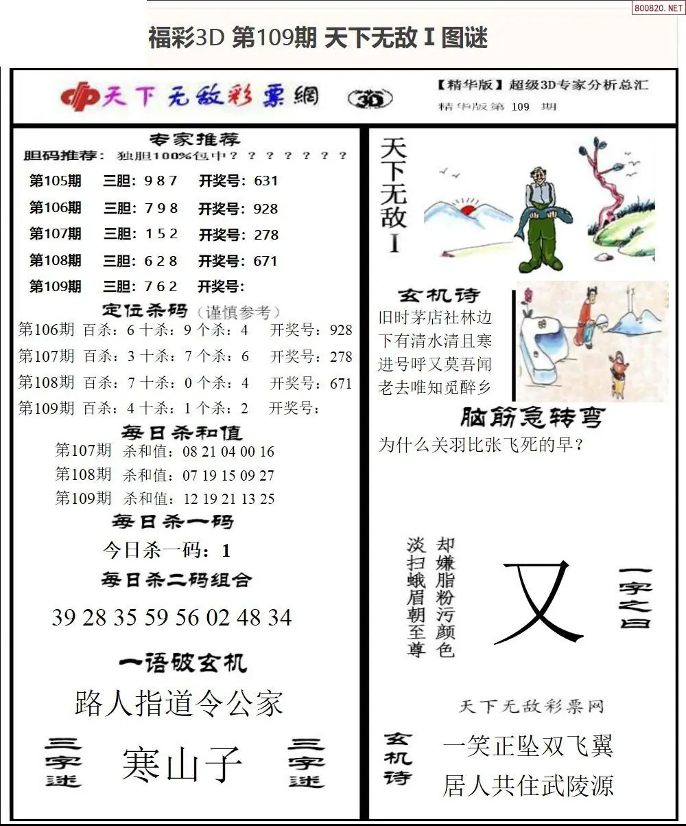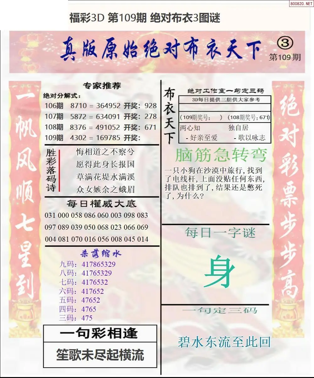 (3)2026109期3D预测总汇全图_福彩3d图谜字谜总汇