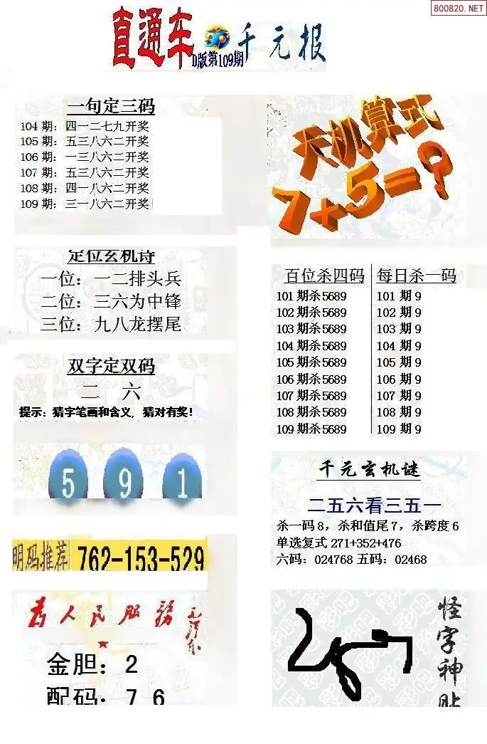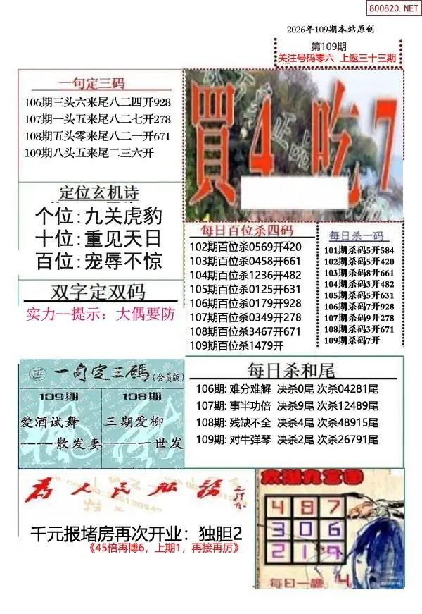 (9)26年109期当期全站杀号定胆图