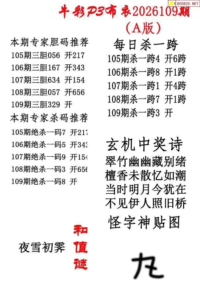 2026109期雷锋日报+中龙全图_p3天齐网图谜汇总