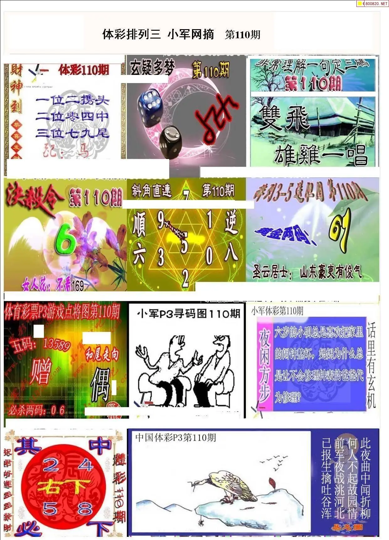2026109期彩友图迷汇总_图迷汇总排列3图谜汇总考辑牛彩网