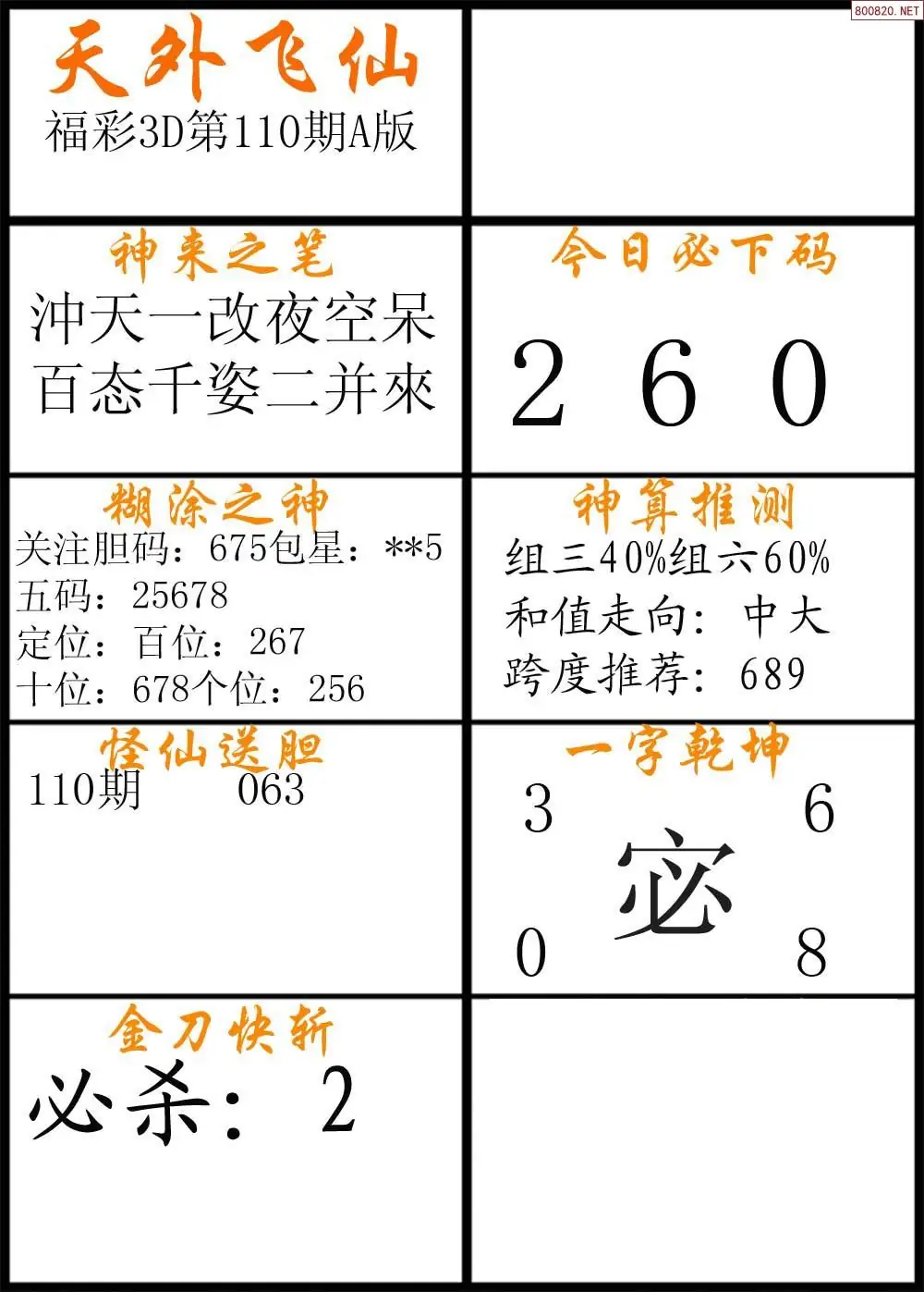 110期福彩3d天外飞仙A版