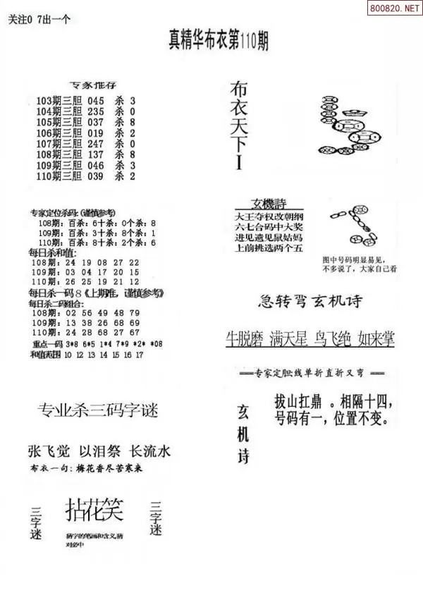 110期真版布衣神算专家推荐