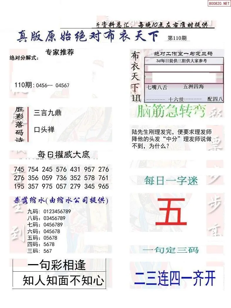 110期真版布衣神算专家推荐
