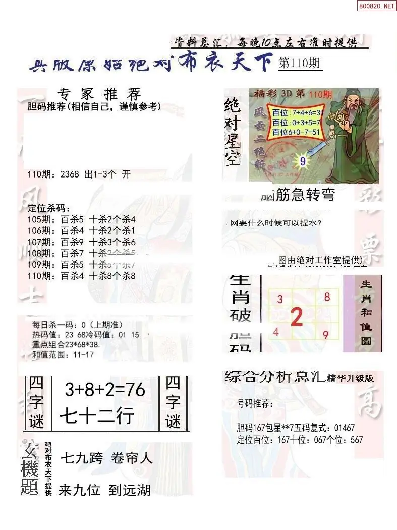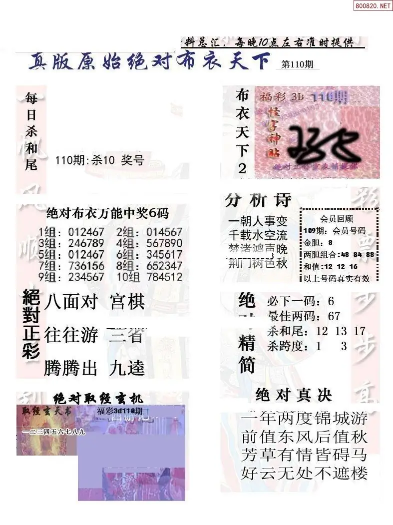 福彩110期3d真精华布衣+布衣早报(转载)