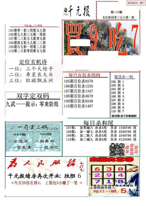 (9)26年109期当期全站杀号定胆图