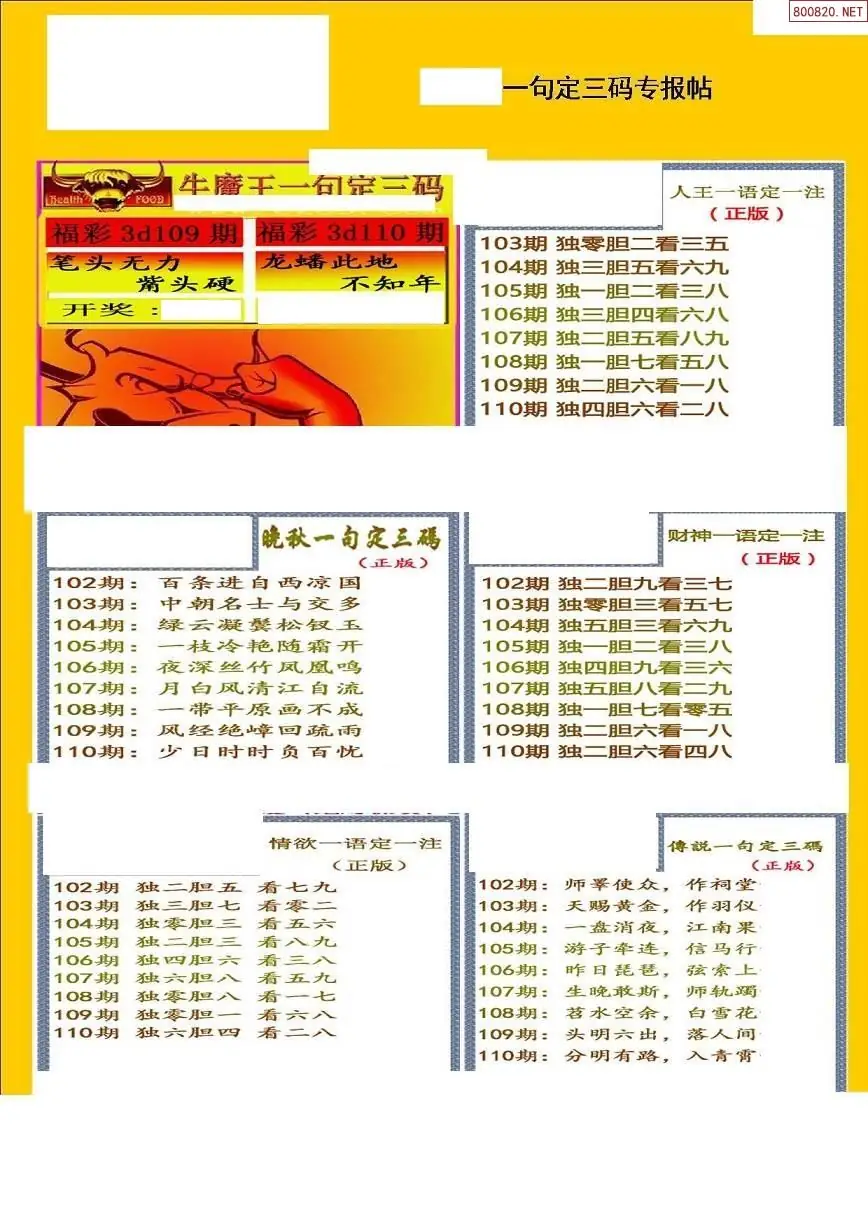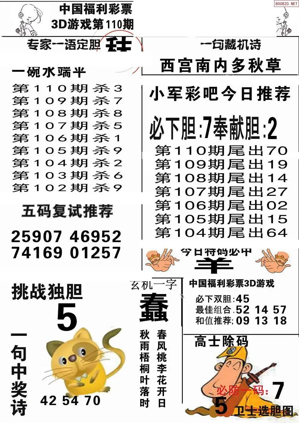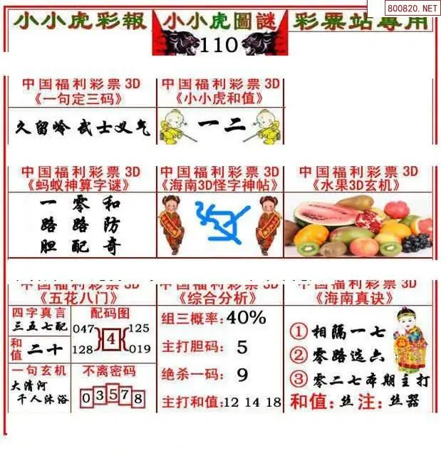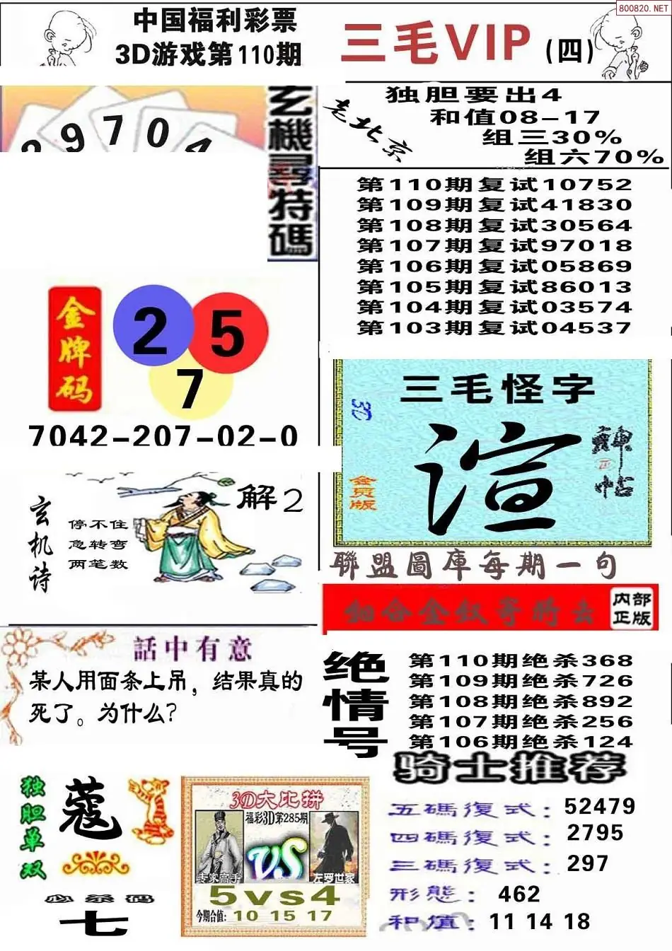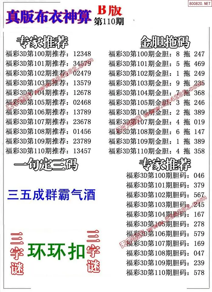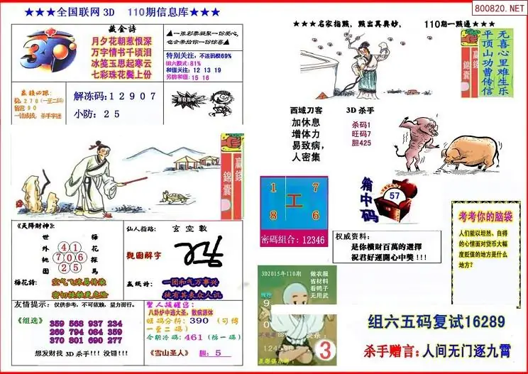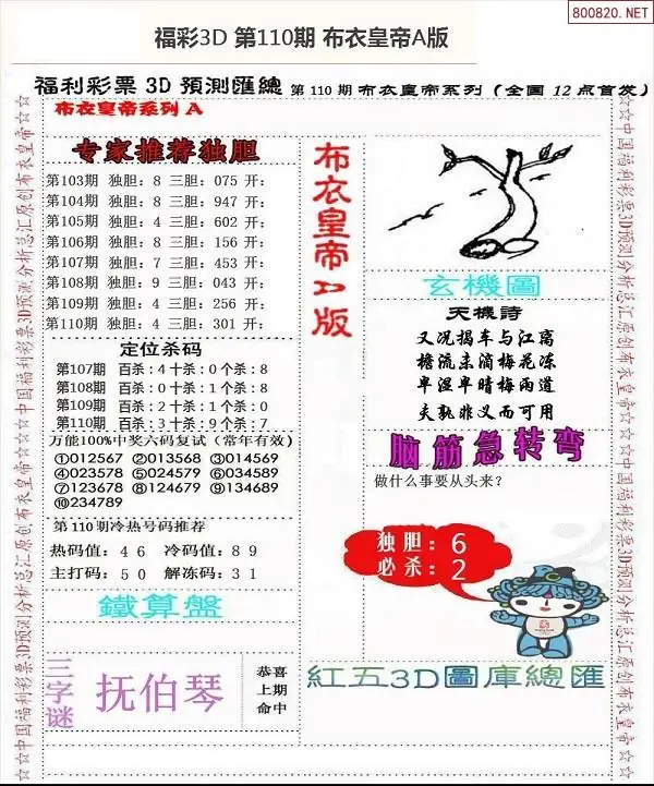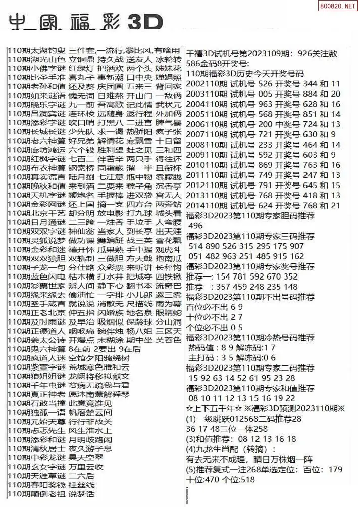 (3)2026110期3D预测总汇全图_福彩3d图谜字谜总汇