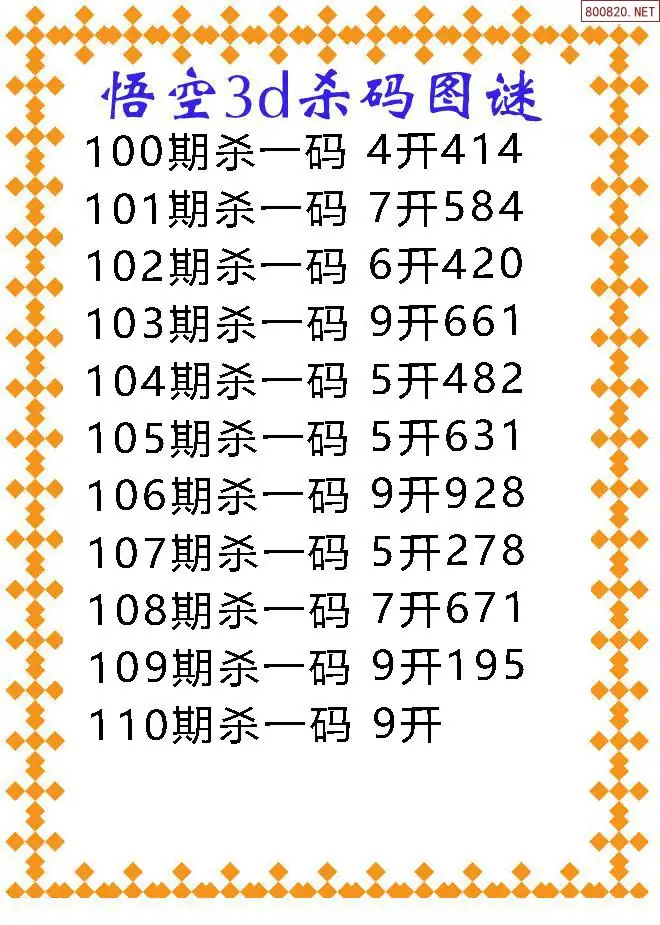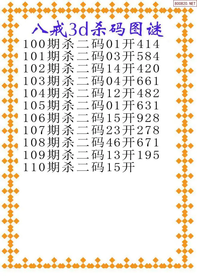 (3)2026109期3D预测总汇全图_福彩3d图谜字谜总汇