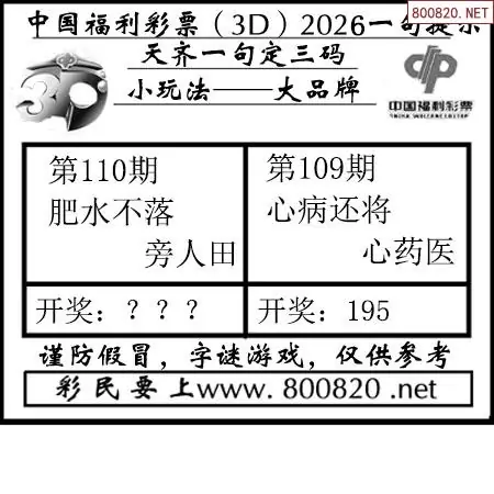(8)26年109期今日3d各类彩报汇总