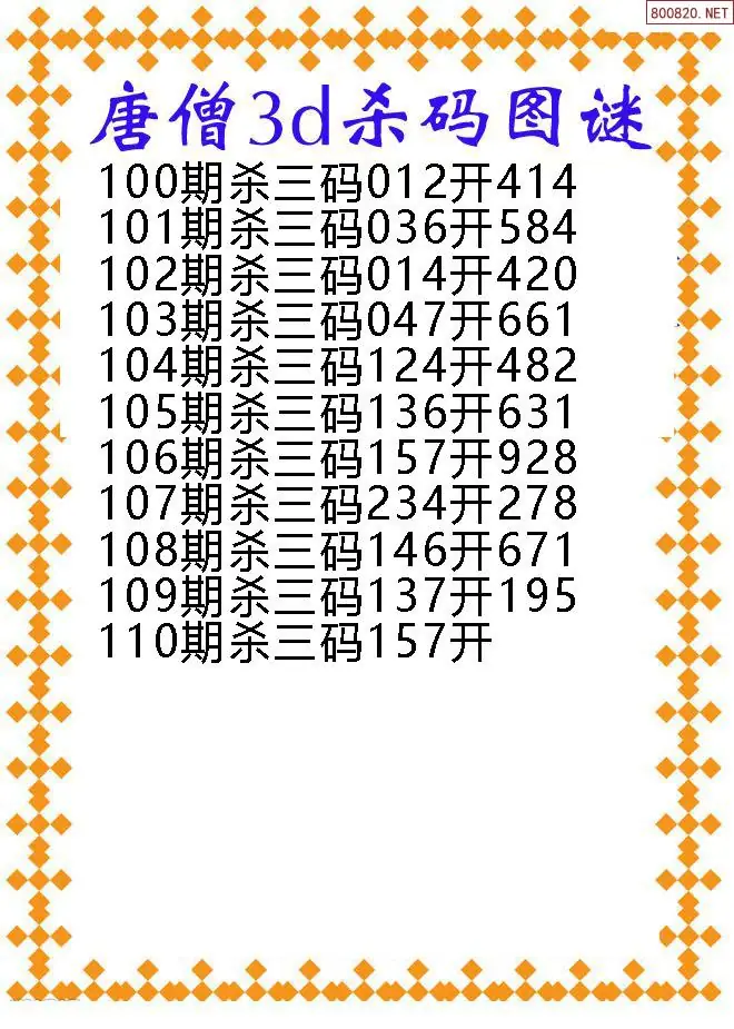 (3)2026110期3D预测总汇全图_福彩3d图谜字谜总汇