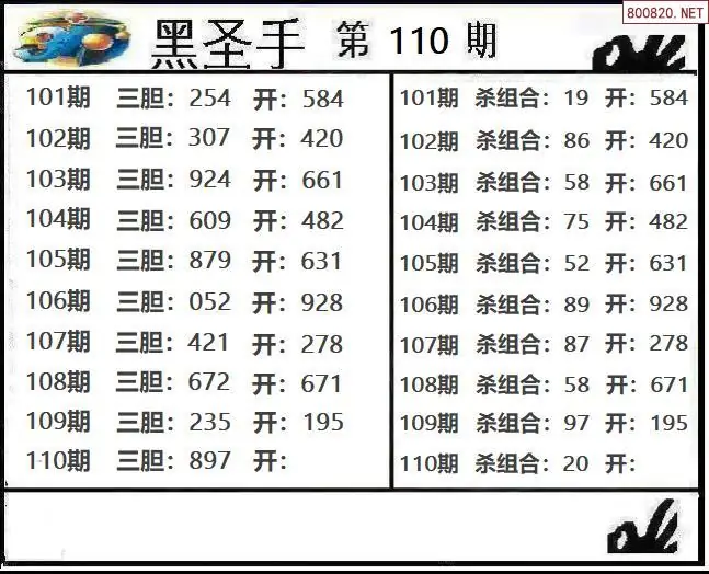 (9)26年110期当期全站杀号定胆图