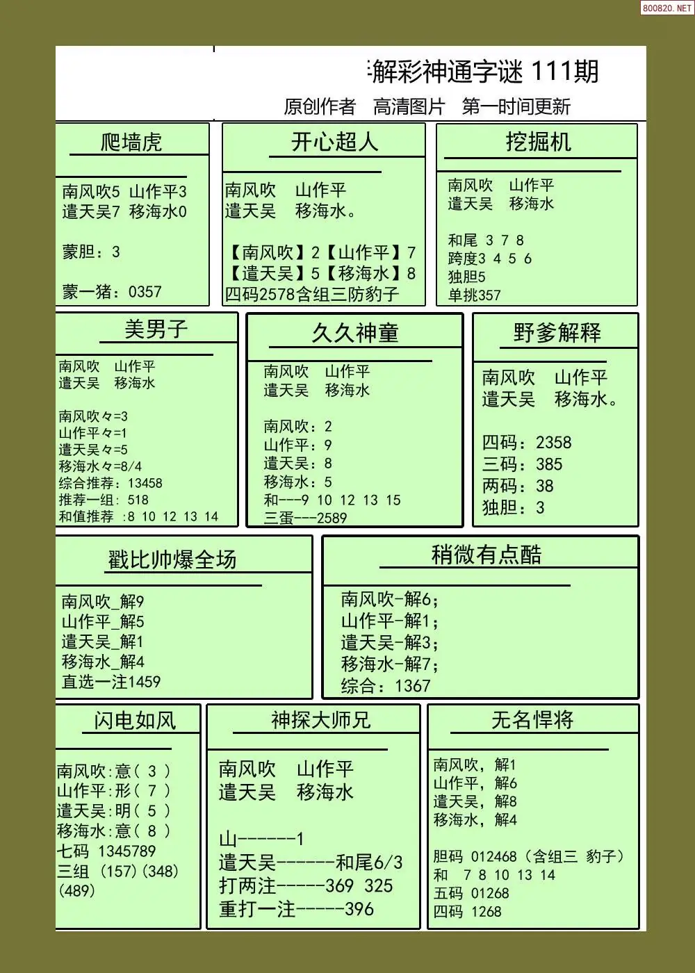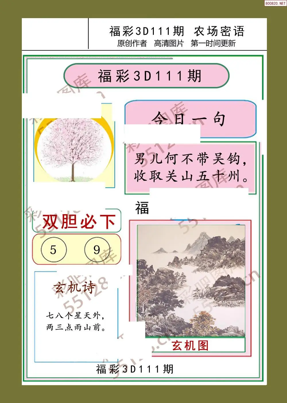福彩3D111期天牛彩吧套图整合总汇