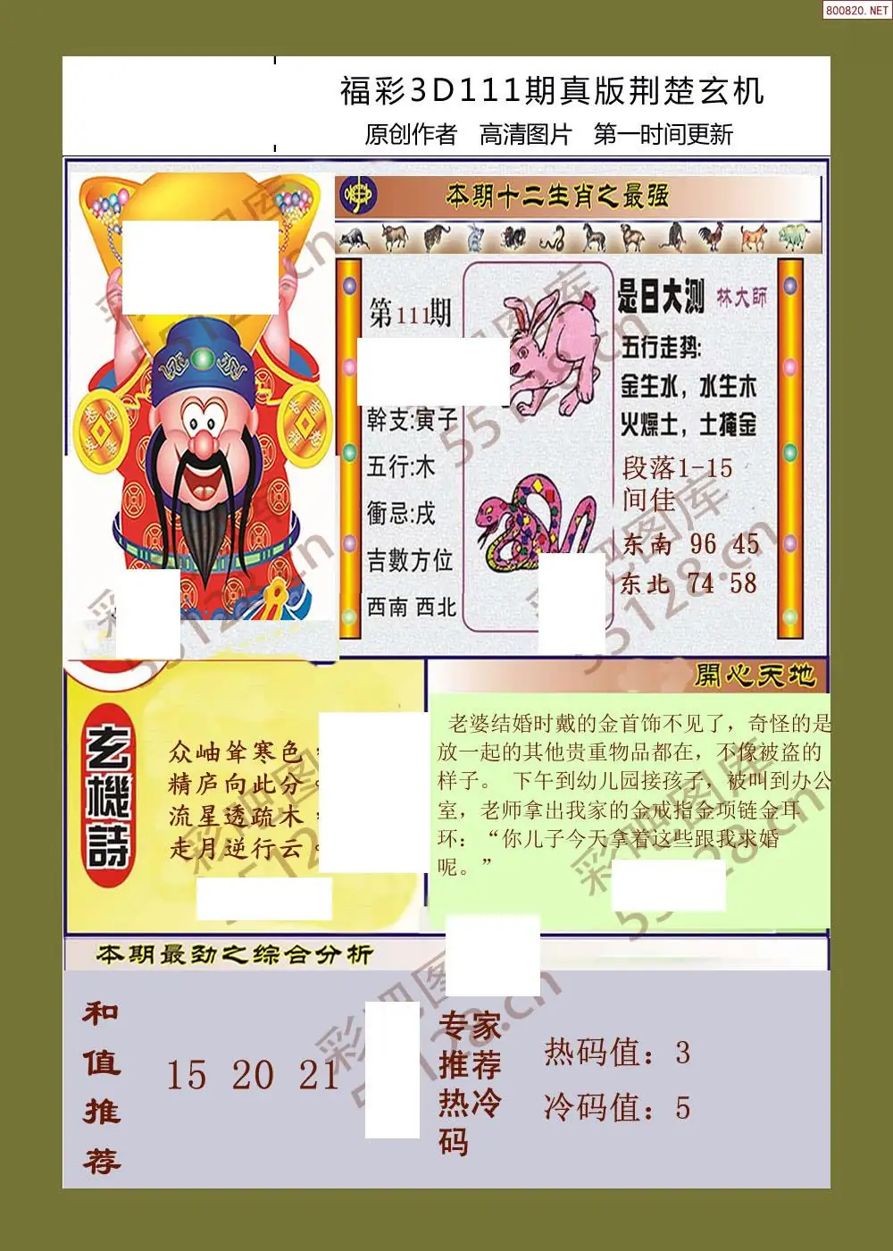 111期鑫马分析+杀手报3d图谜