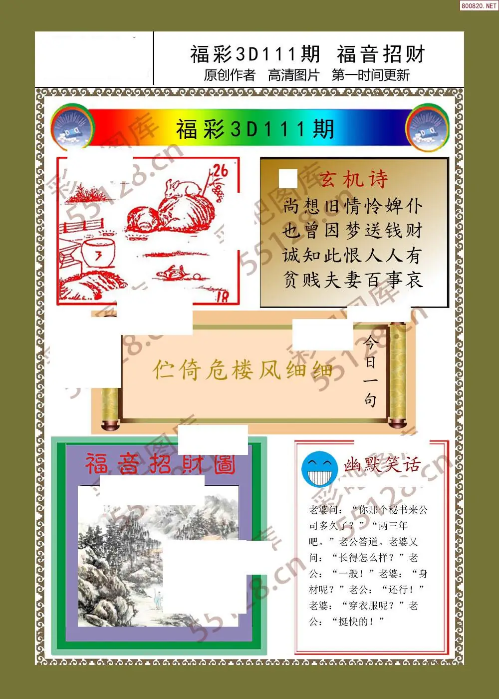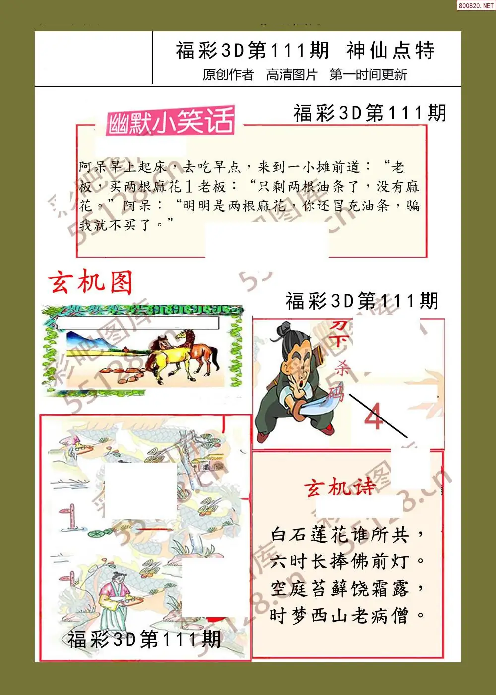 111期福彩天机壁怪字图