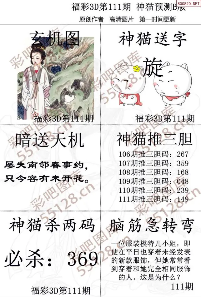 福彩3D111期天牛彩吧套图整合总汇