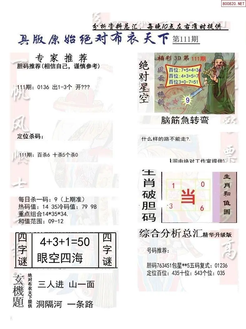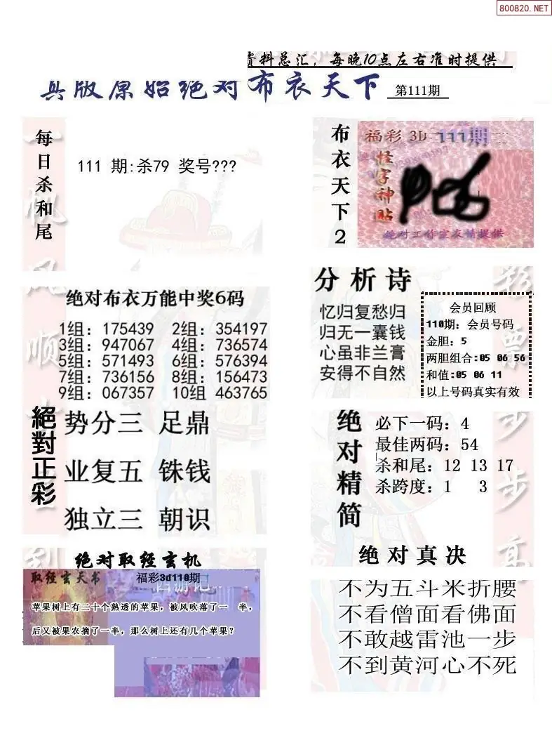 福彩111期3d真精华布衣+布衣早报(转载)