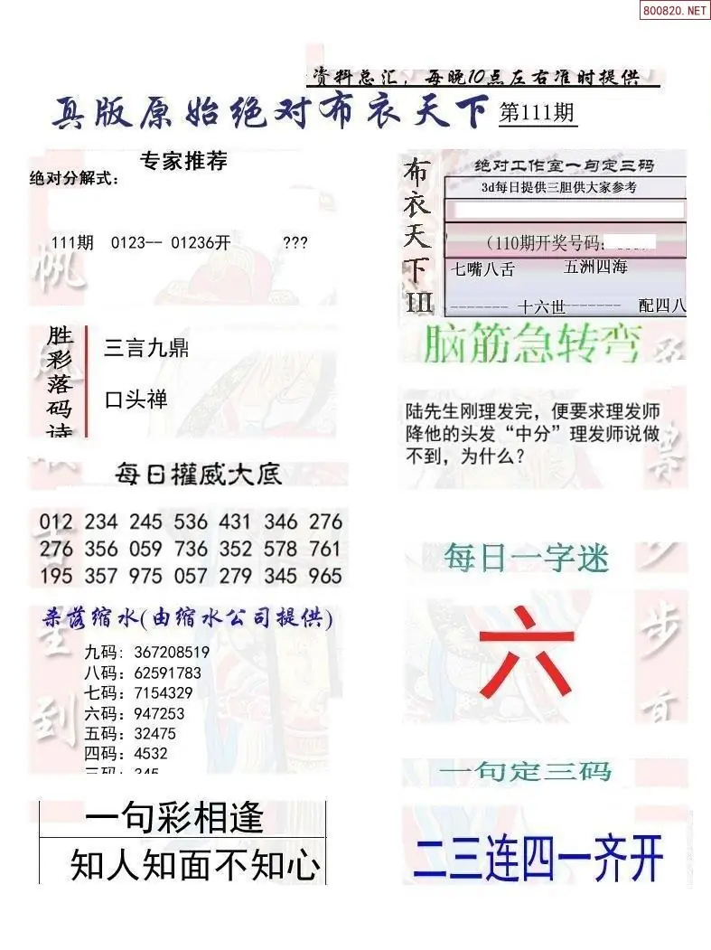 26111期真精华布衣123456(晚间报)