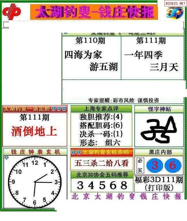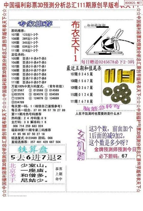 福彩3D111期天牛彩吧套图整合总汇
