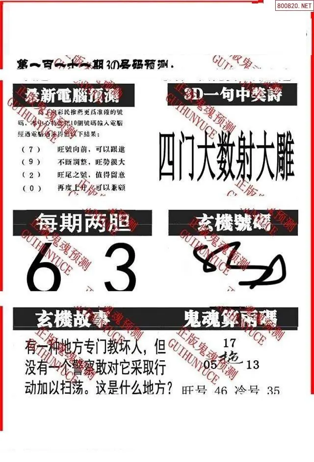 (3)2026111期3D预测总汇全图_福彩3d图谜字谜总汇