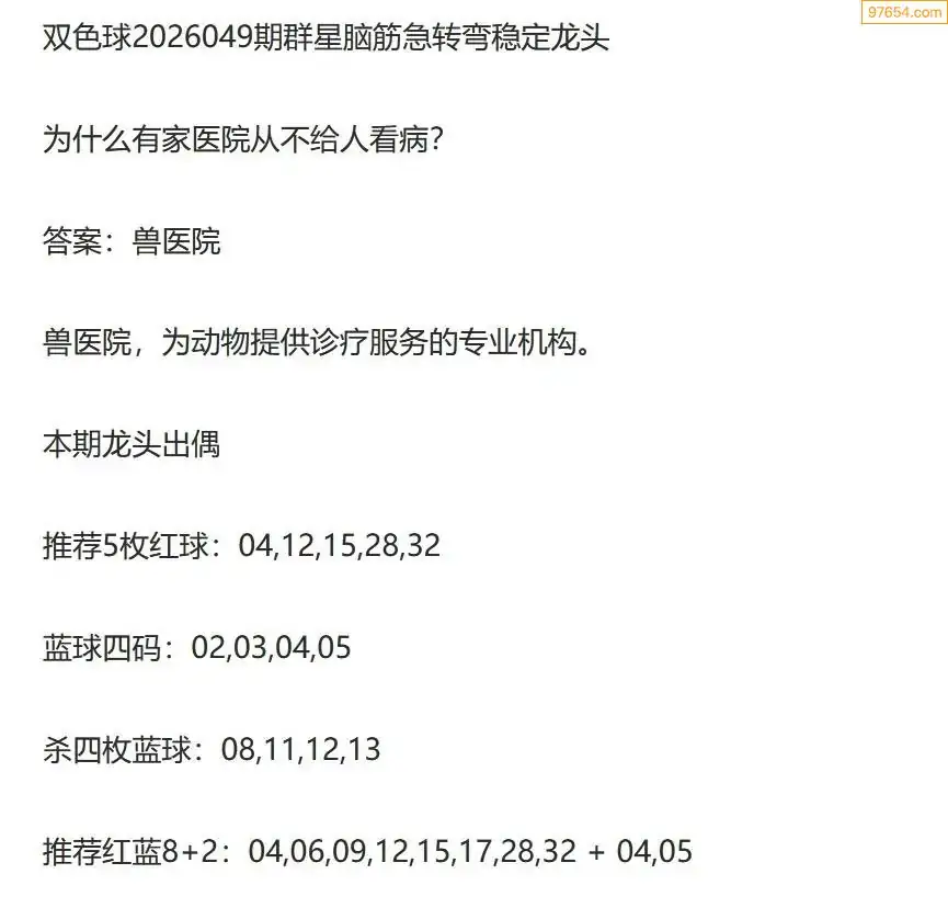 群星双色球26年049期脑筋急转弯龙头谜语