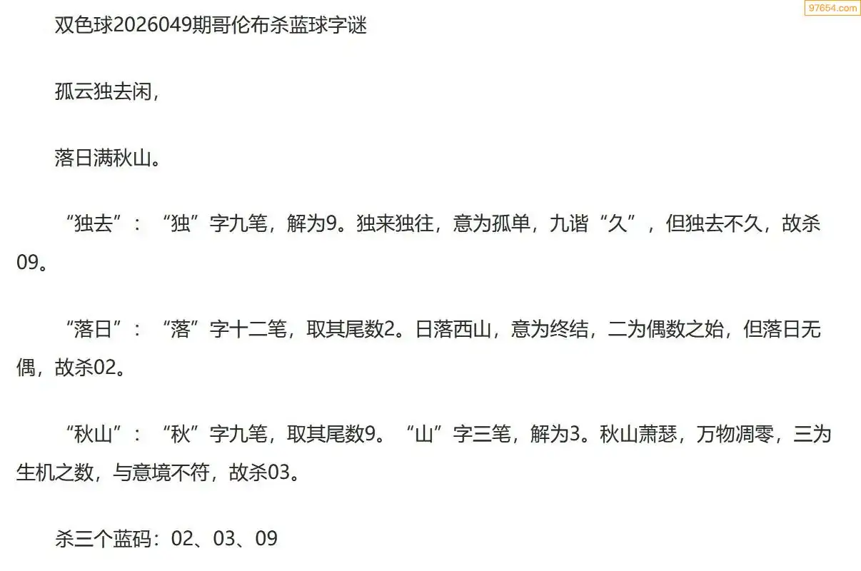 哥伦布双色球26年049期一句杀蓝球字迷