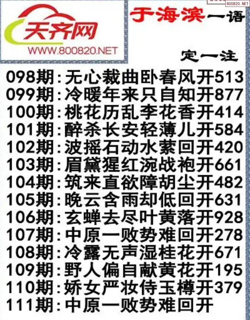 于海滨福彩3D26111期一语定一注
