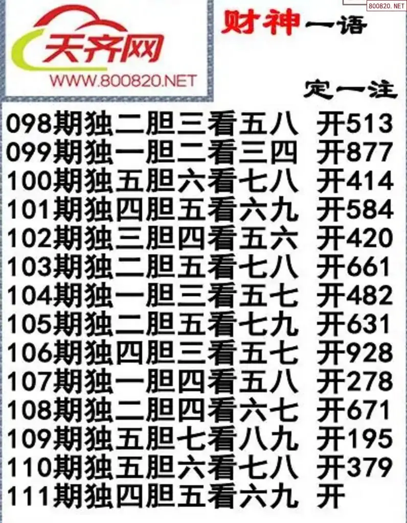 111期3D晚秋(乙种和值)谜:出钱出力 D:二室添一