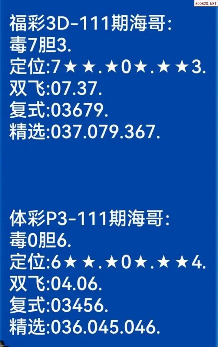 海哥福彩111期3d今日双胆