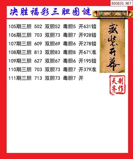 天齐网3d26年111期胆码图 胆:63