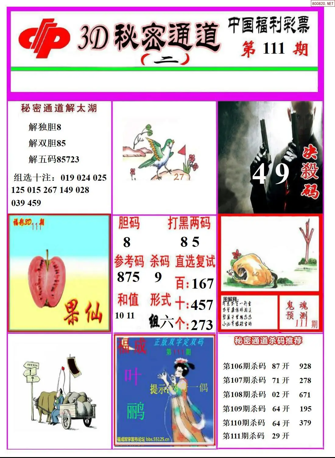 2026111期彩彩网3d原创图迷搜集(天中整理)