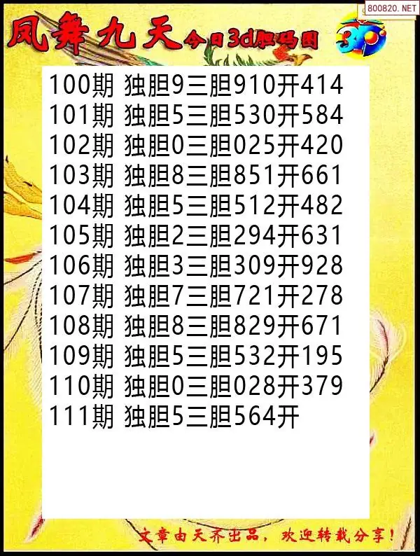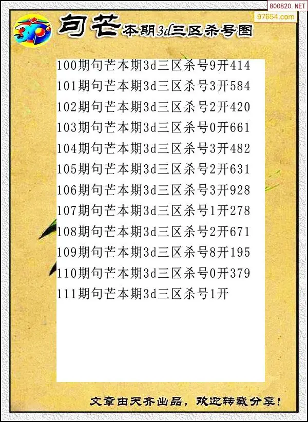 (8)26年111期今日3d各类彩报汇总