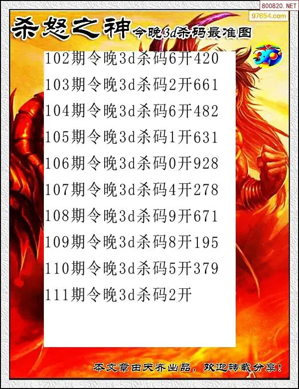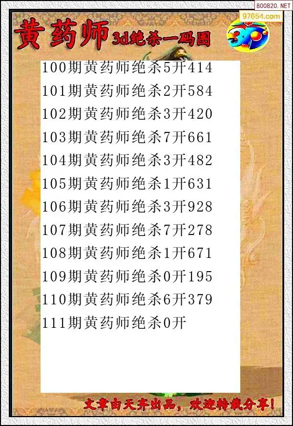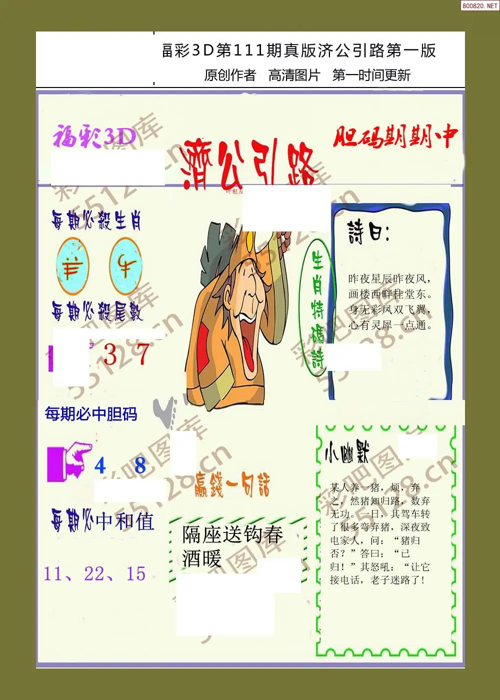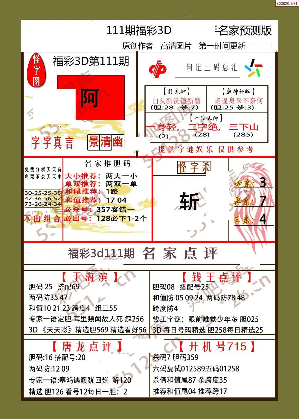 (2)26年111期本期3d图迷汇总_福彩3D图谜总汇图