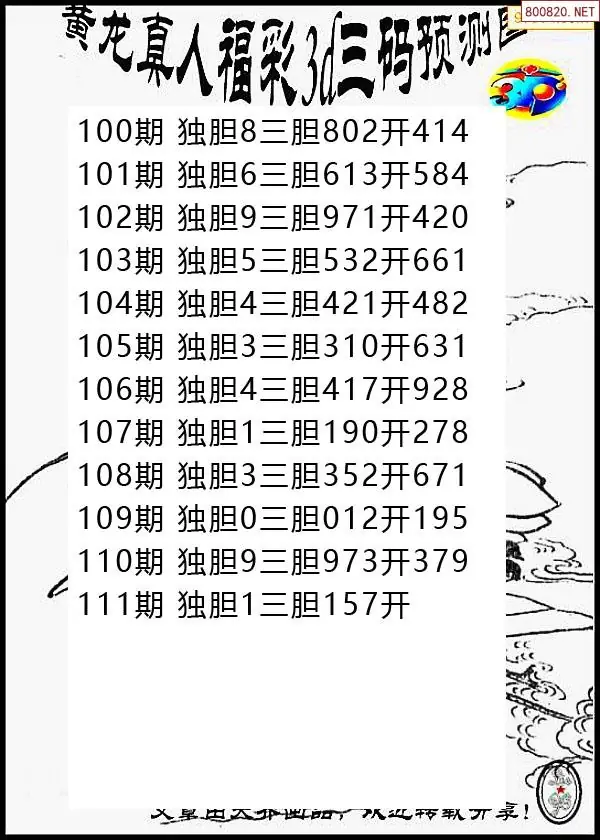 (3)2026110期3D预测总汇全图_福彩3d图谜字谜总汇