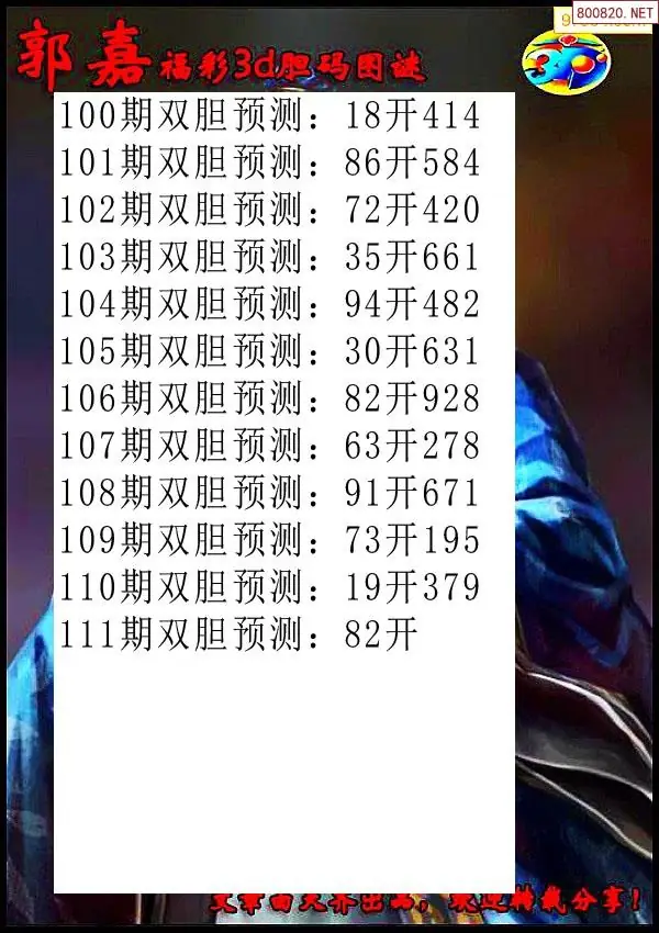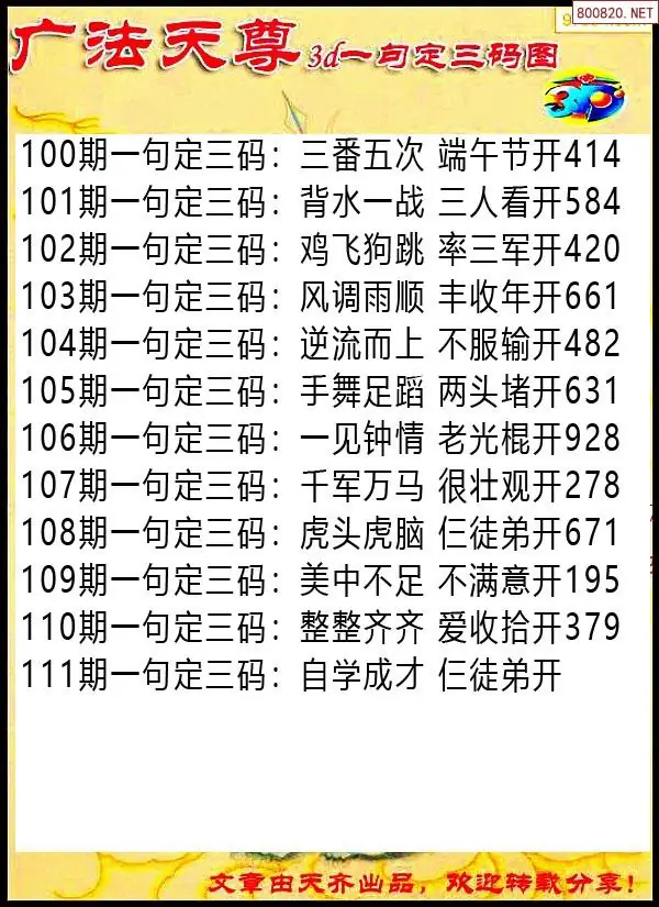 (3)2026111期3D预测总汇全图_福彩3d图谜字谜总汇