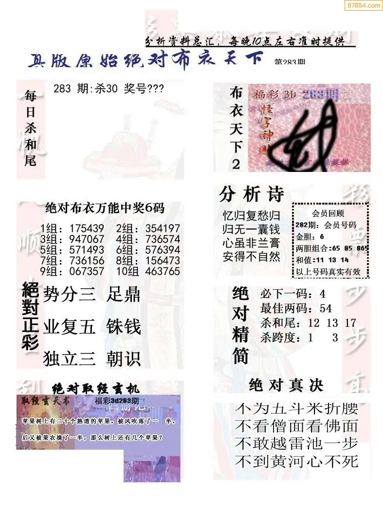 283期真版布衣神算专家推荐