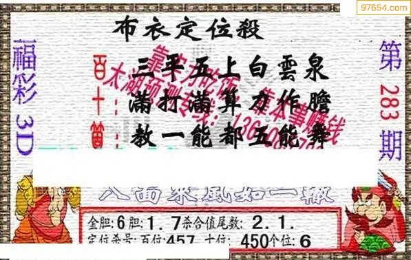 福彩3d283期新禧布衣定位杀号