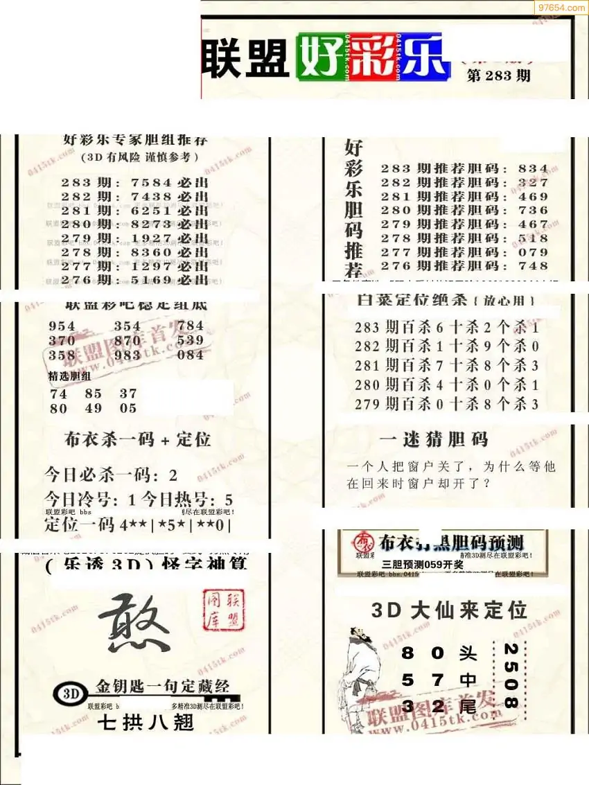 2025283期联盟好彩乐直通车1