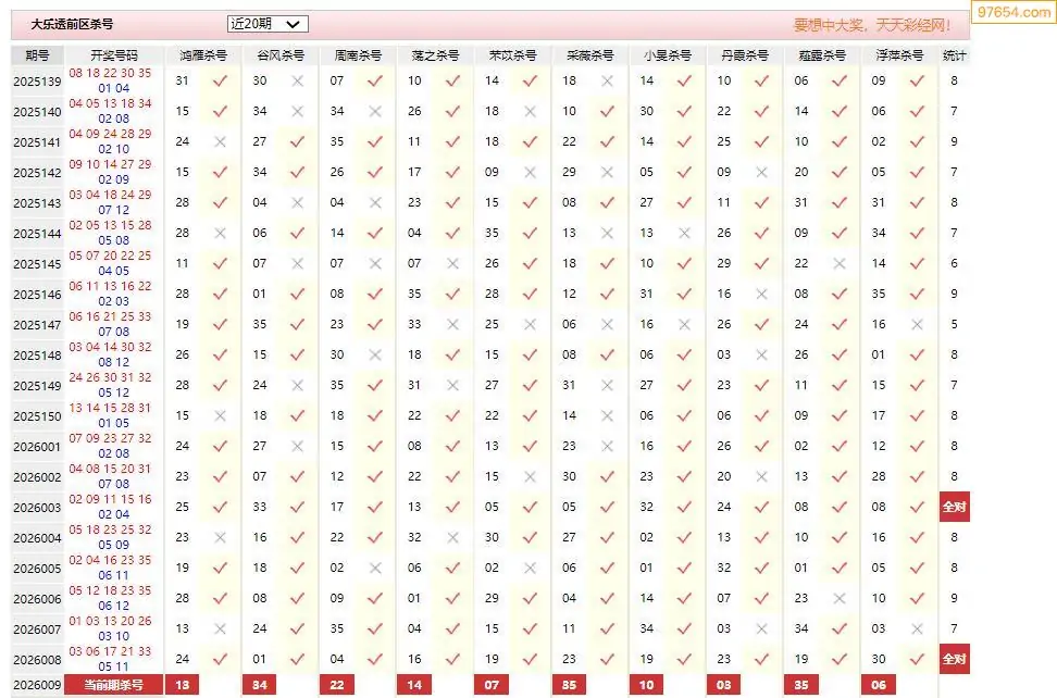 009期大乐透彩经十大专家前区杀号汇总
