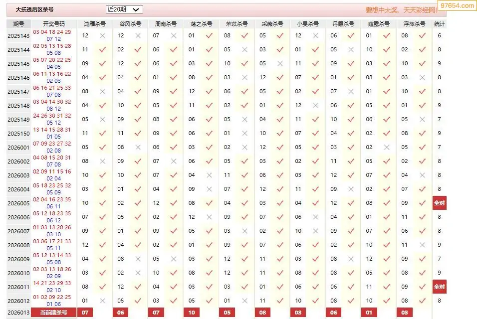 超级大乐透26016期章衣萍后区关注杀三码